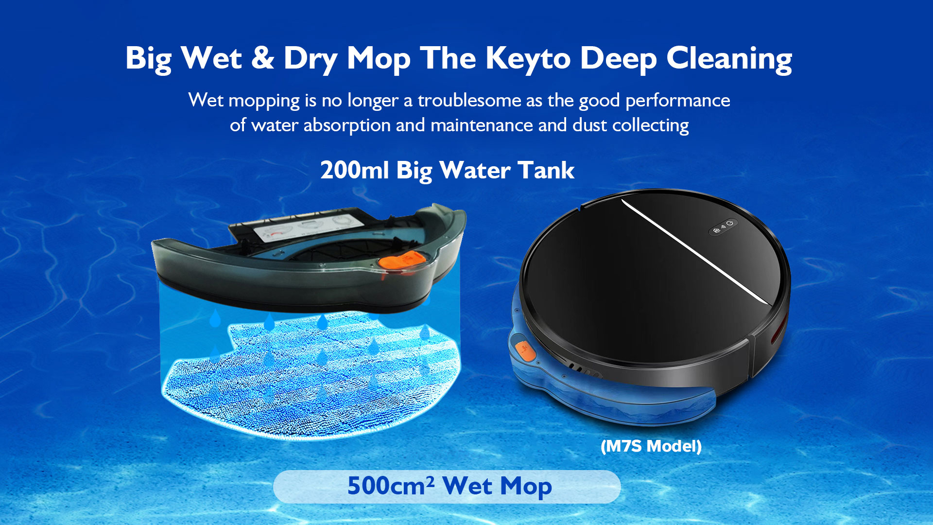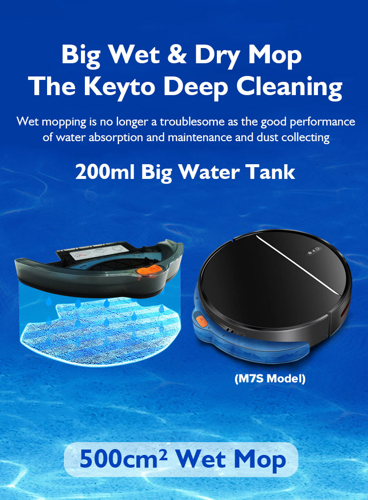 M7S can be connected to the internet and controlled from there via an app on your mobile phone. Using the app you can, for example, start cleaning, set a cleaning period, switch between different cleaning programs and see how much battery is left. In addition, M7S can also be controlled with Alexa or Google Home.